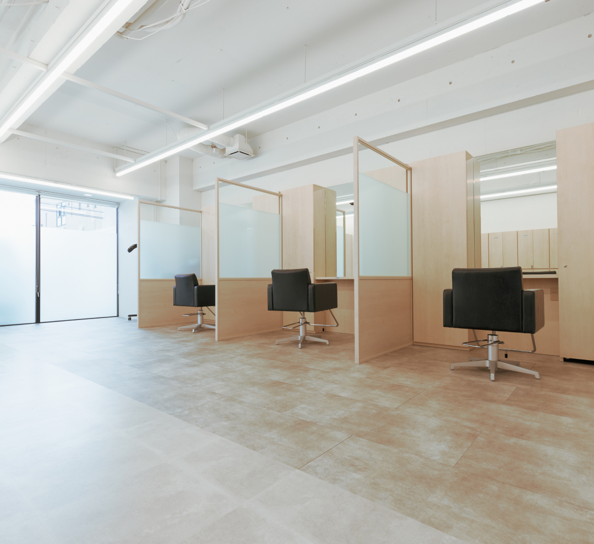 「atarse」とはスペイン語で「結ぶ」という意味。落ち着いた内装と十分な設備環境でフリーランス美容師のサロンワークを快適に、お客様と美容師を結ぶ上質な空間を用意しました。